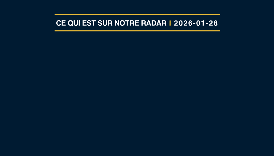 Trois choses que nous surveillons : Semaine du 28 janvier